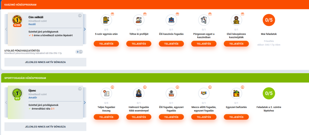 | Ezüst | 1 pont / 800 HUF | 5% | Free Bet jutalmak |