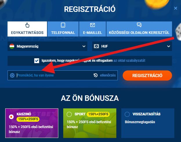 Az aktiválás során nem szükséges bónuszkód megadása, de egyes időszakos kampányokhoz (pl. nyári promóciók vagy sportesemények) a promo kód opcionálisan használható. Az üdvözlő ajánlat minden új játékos számára egyszer igényelhető, és 7 napon belül aktiválni kell a befizetést követően.
